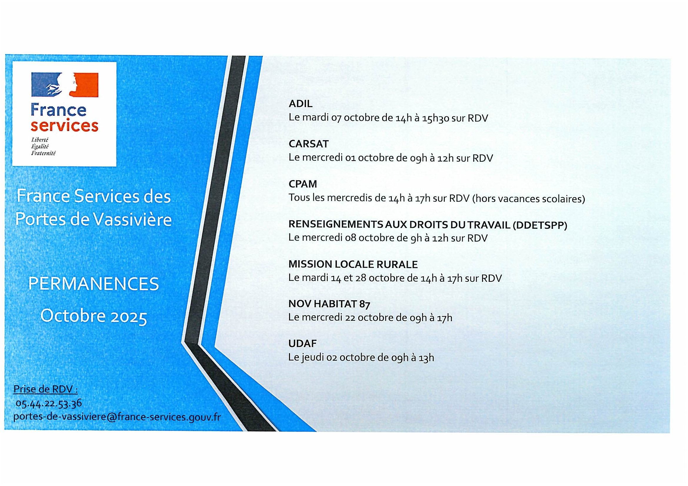 PERMANENCES FRANCE SERVICES – OCTOBRE 2025