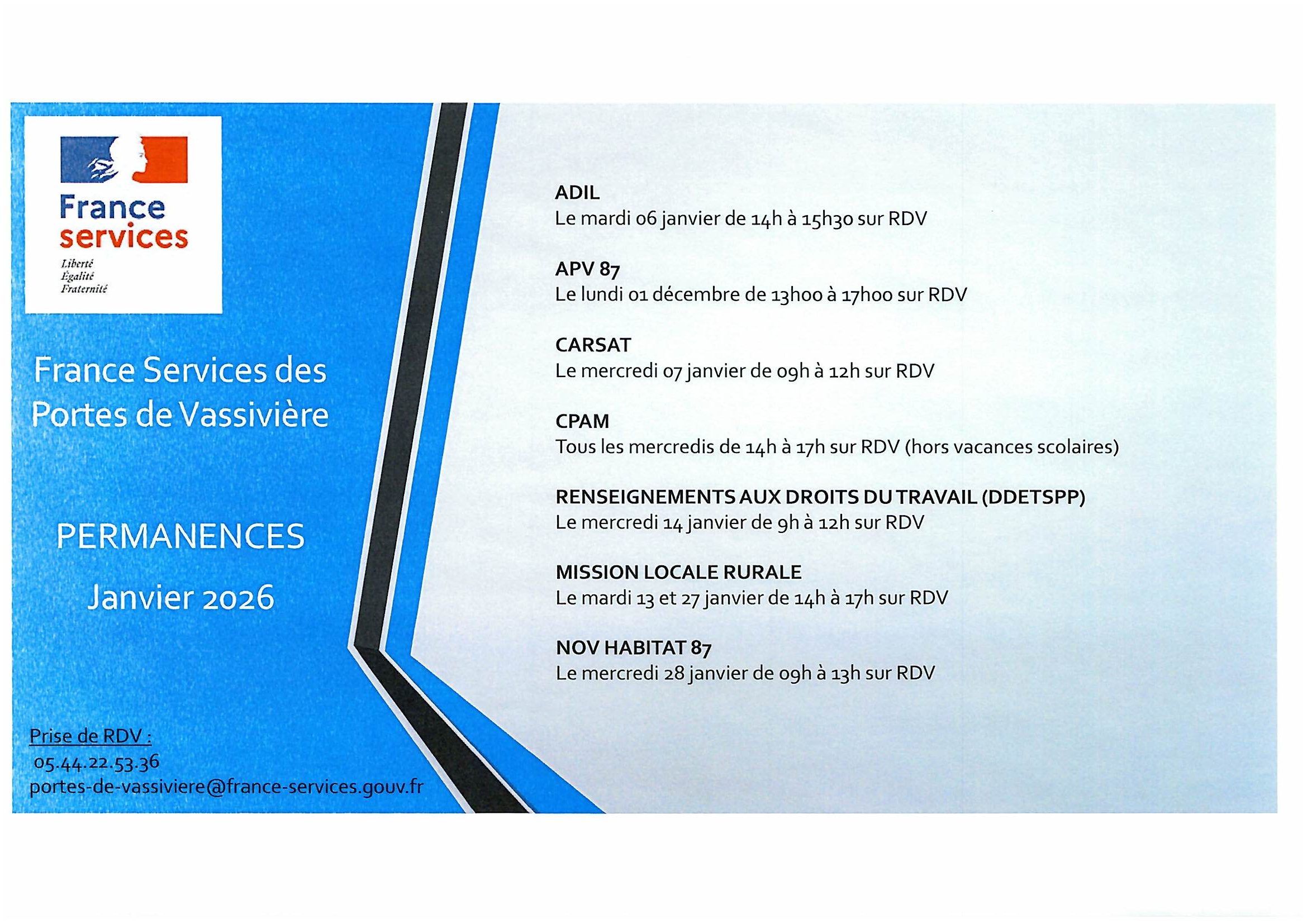 PERMANENCES FRANCE SERVICES – JANVIER 2026