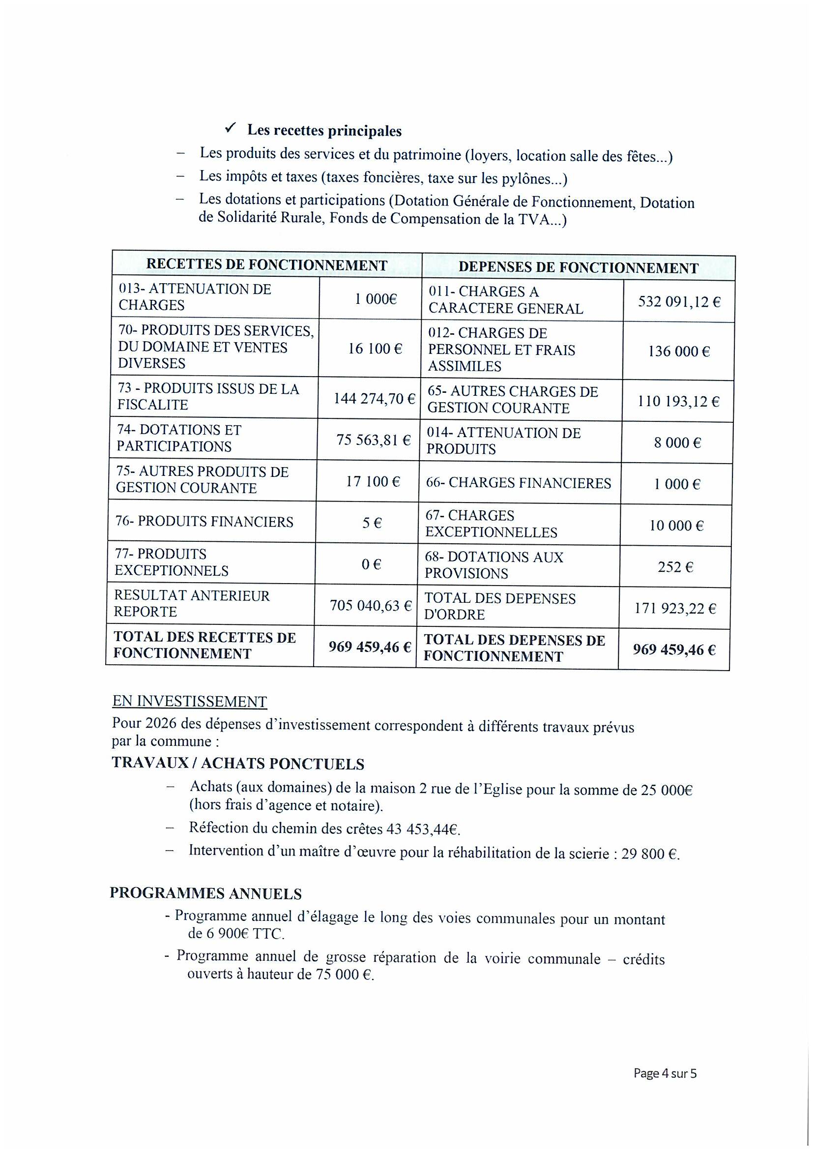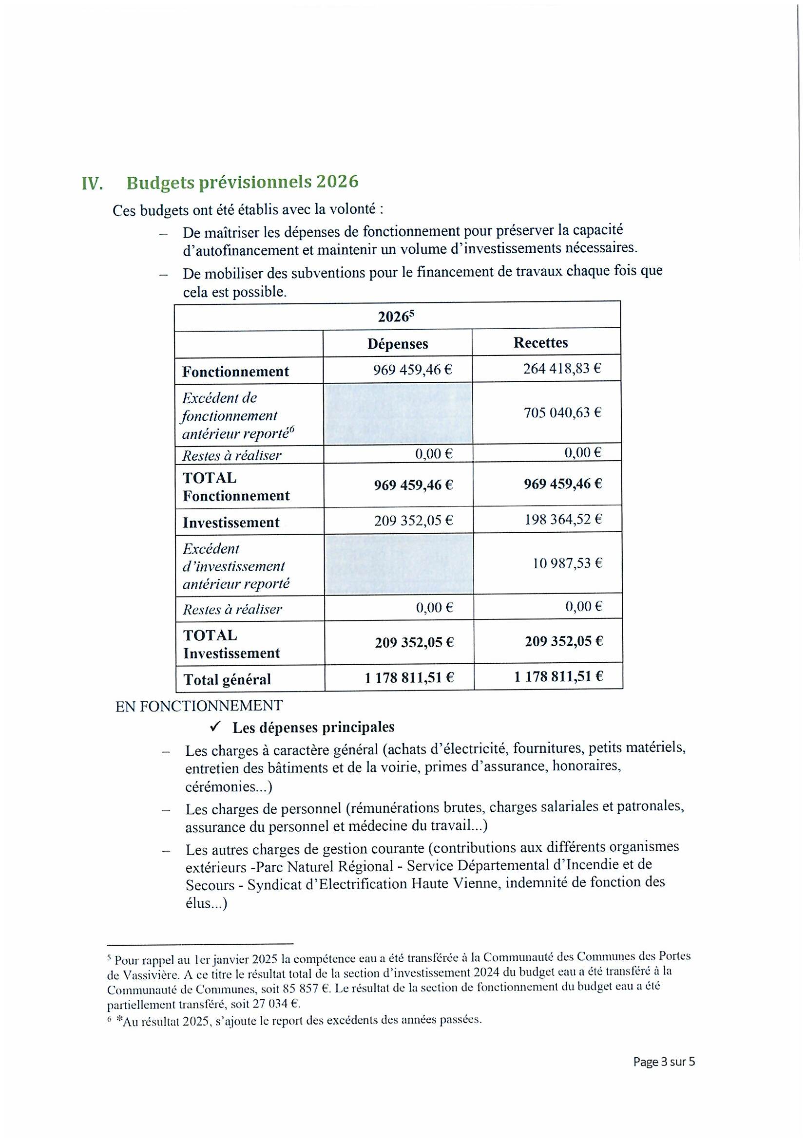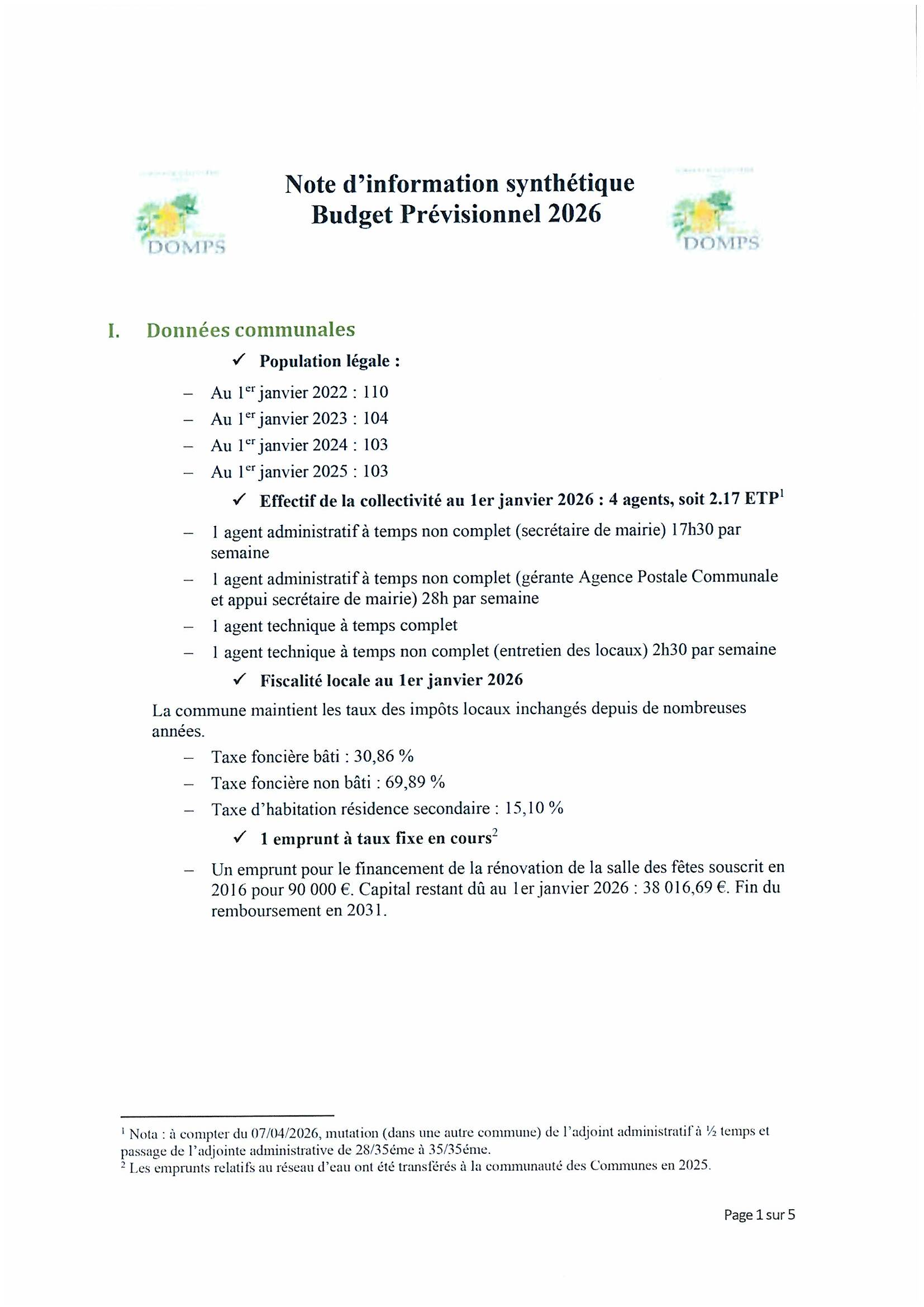 NOTE D’INFORMATION SYNTHETIQUE – BUDGET PREVISIONNEL 2026