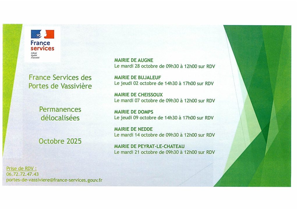 PERMANENCES DELOCALISEES FRANCE SERVICES – OCTOBRE 2025
