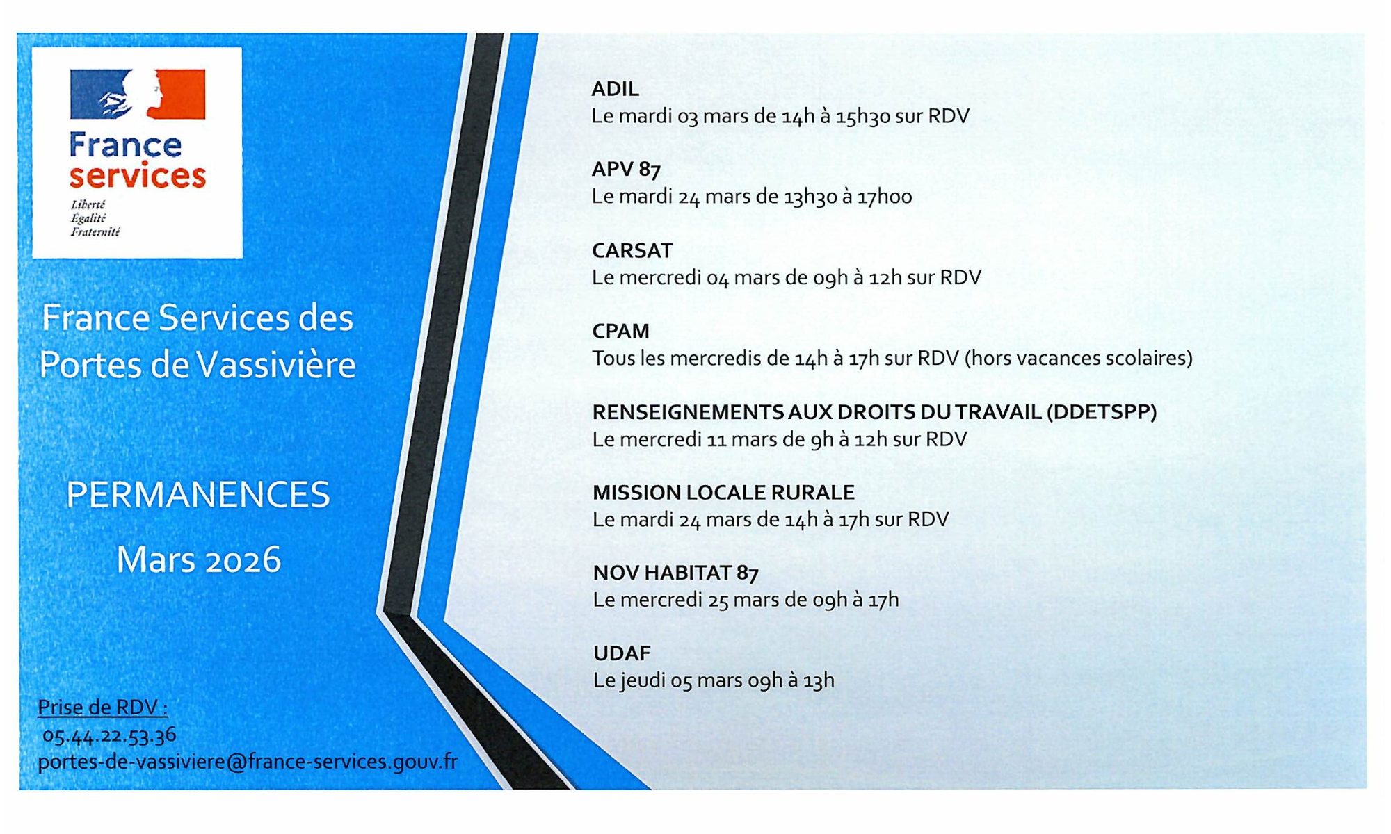 PERMANENCES FRANCE SERVICES – MARS 2026