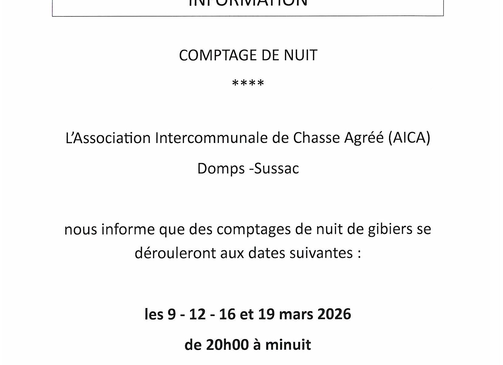 COMPTAGE DE NUIT – ASSOCIATION INTERCOMMUNALE DE CHASSE AGREE DOMPS SUSSAC