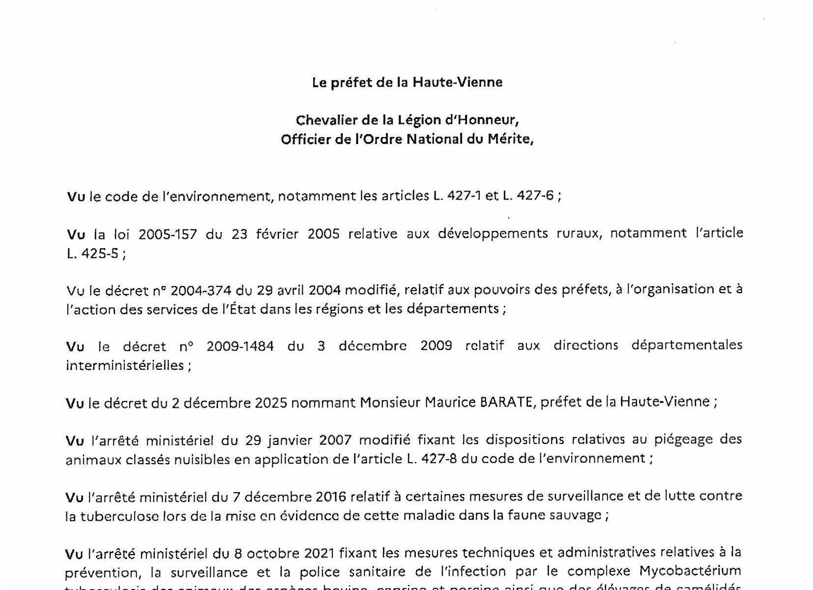 ARRETE PREFECTORAL – CAPTURE DE BLAIREAUX DANS LE DEPARTEMENT DE LA HAUTE-VIENNE
