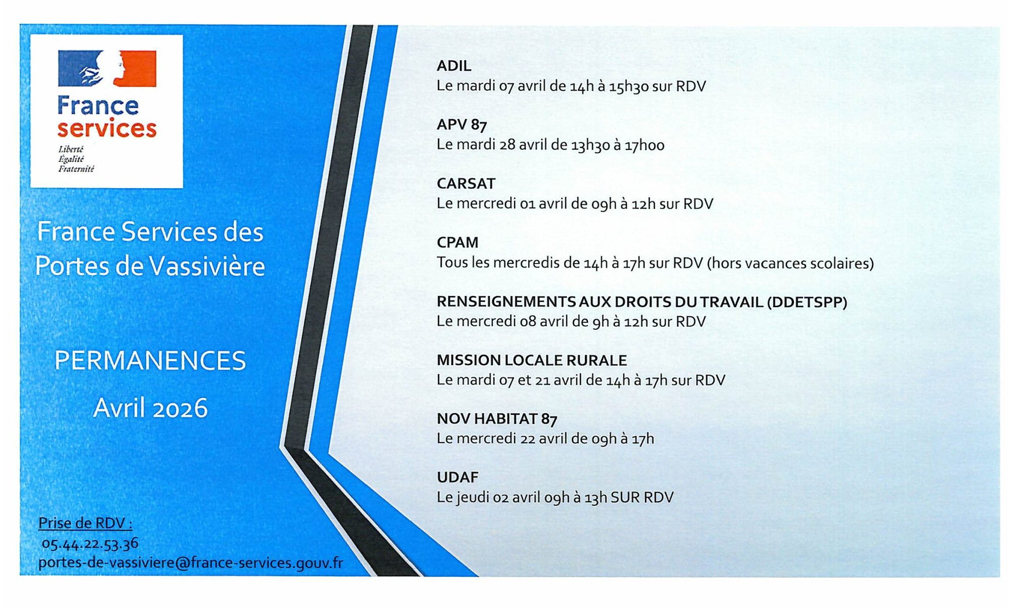 PERMANENCES AVRIL 2026 – FRANCE SERVICES