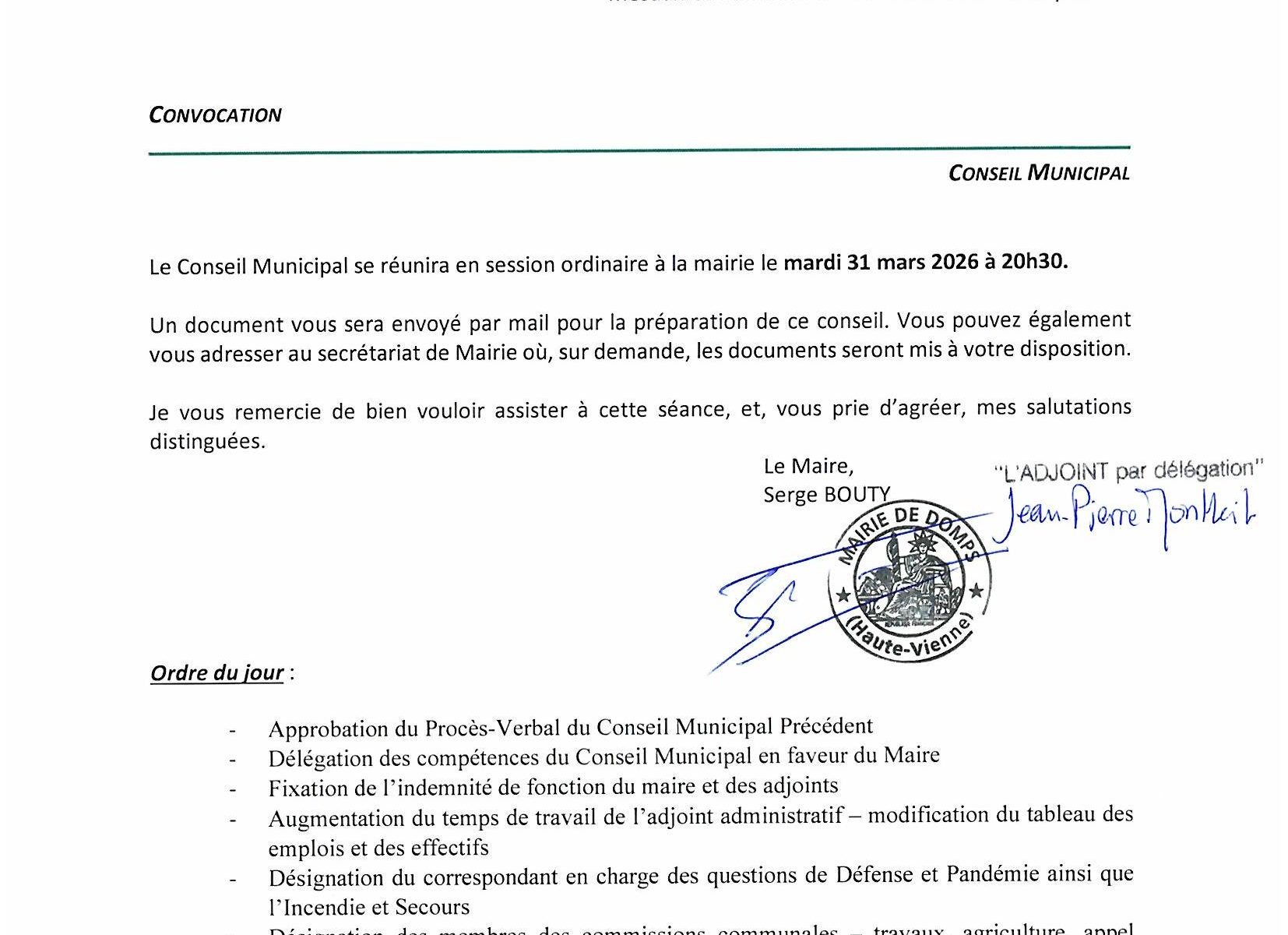 ELECTION DU NOUVEAU MAIRE : MONSIEUR SERGE BOUTY – ET SES ADJOINTS : JEAN-PIERRE MONTHEIL ET LYSIANE CAMBON